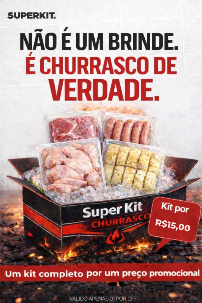 - 700g de Contra filé - 700g de Linguiça - 1kg de Frango - 1 Pacote de pão de alho